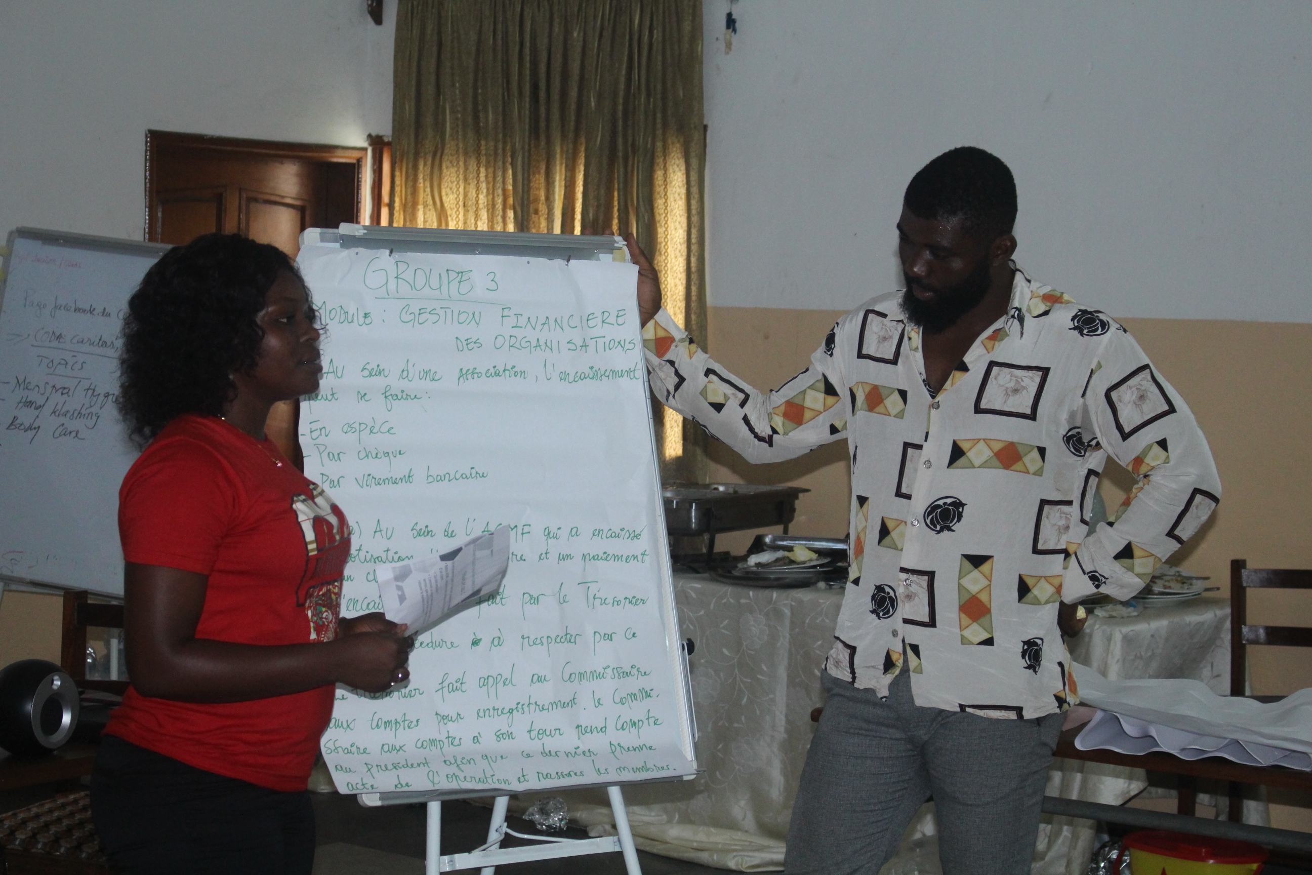 Le Leadership : Notion et enjeux ainsi que les notions de base sur la gestion administrative et financière sont les deux articulations majeures qui ont meublé cet atelier. Les participants, une vingtaine de jeunes leaders issus des quartiers populaires cibles du projet, ont ainsi pu à travers exposés, travaux de groupes et restitutions en pleinière, revisiter et s’impregner des notions de leader, leadership, gestion et organisation administrative et financière.