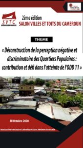 L’initiative est portée par le CODAS Caritas Douala à travers le Projet de promotion et de protection du droit au logement décent en abrégé « Projet AQP » et intervient dans le cadre de la célébration de la Journée mondiale de la Ville le 31 Octobre 2020. Pour rappel, Les travaux seront menés autour du thème central »« Déconstruction de la perception négative et discriminatoire des quartiers populaires : contributions et défis dans l’atteinte de l’ODD 11 ».